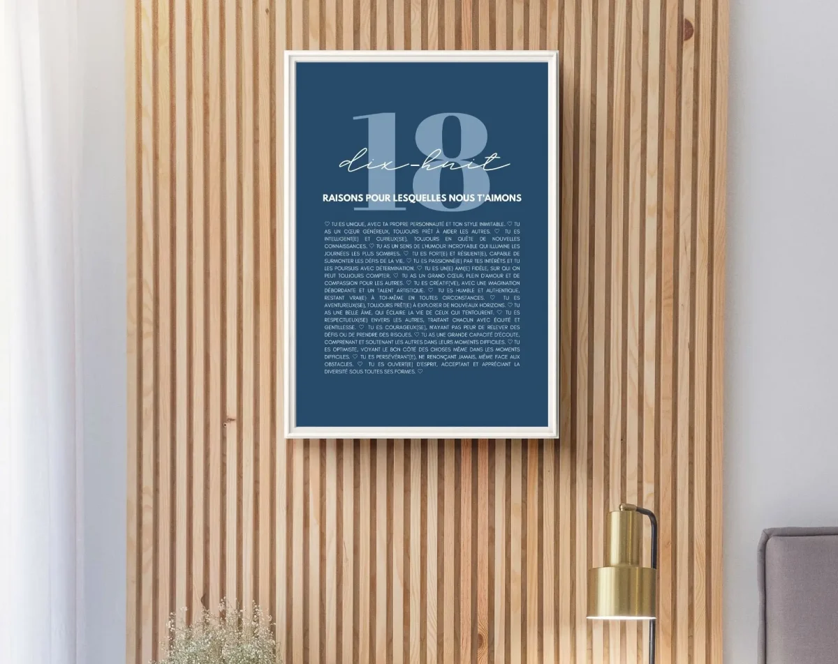 Affiche 18 raisons pour lesquelles nous t’aimons bleu : le cadeau parfait à télécharger