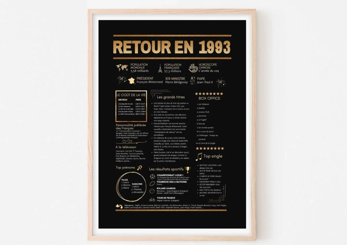 N’attendez plus pour revivre les moments inoubliables de 1983 ou pour offrir ce cadeau unique et personnalisé. Commandez maintenant et faites de votre célébration un événement historique avec notre affiche Journal de l’année 1983 en noir et or 🌟. Profitez d’une qualité d’impression exceptionnelle et d’une livraison rapide pour commencer votre voyage dans le temps dès aujourd’hui 🚀.