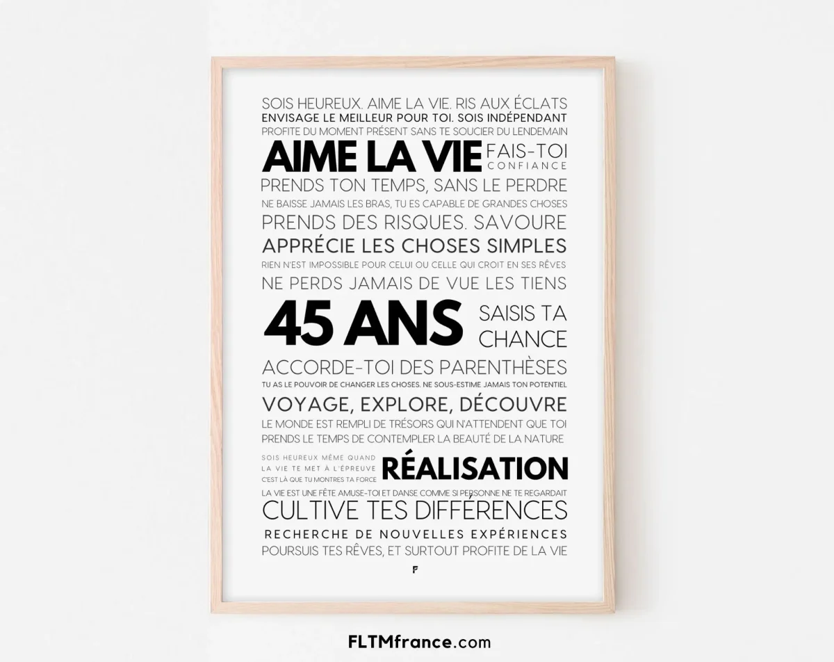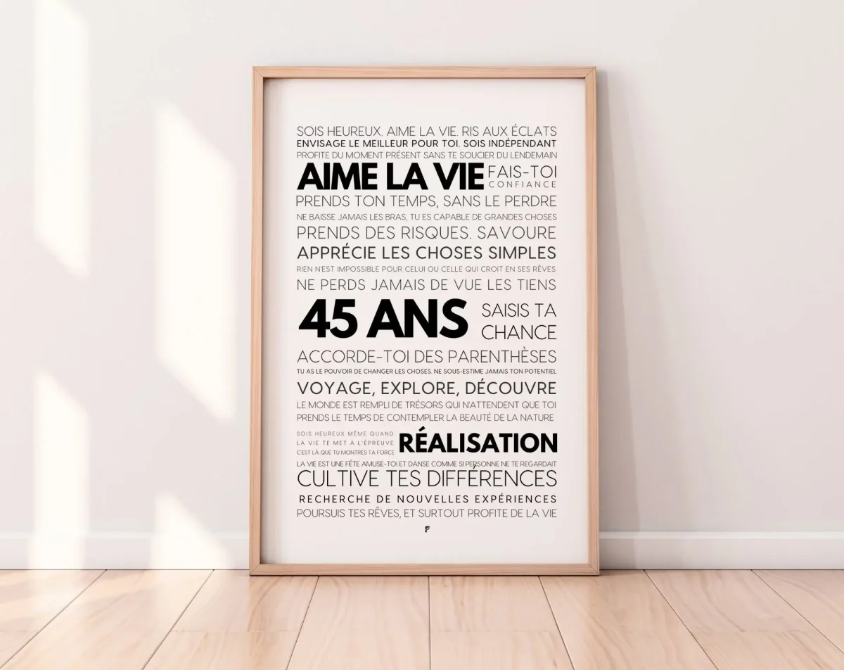 Pourquoi choisir notre affiche anniversaire 45 ans les mots ?