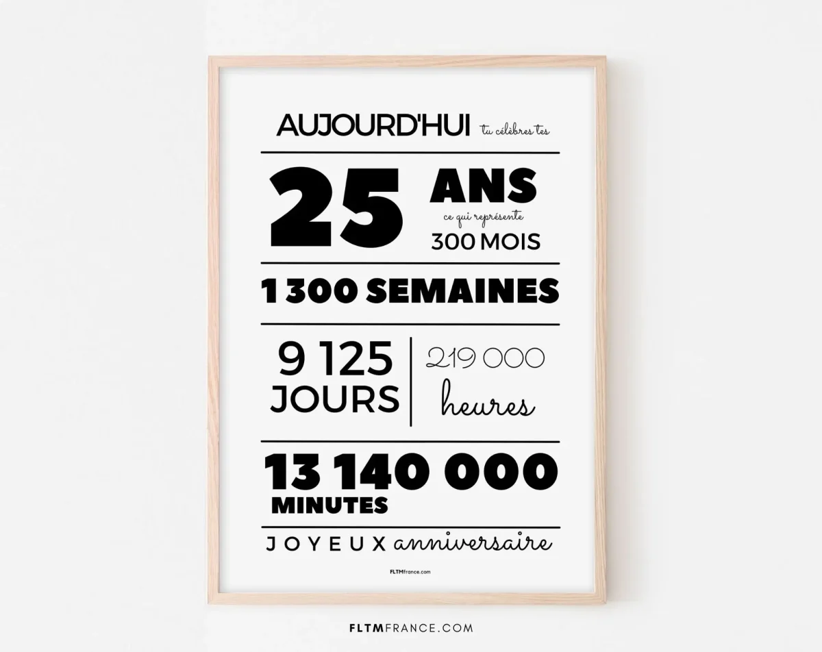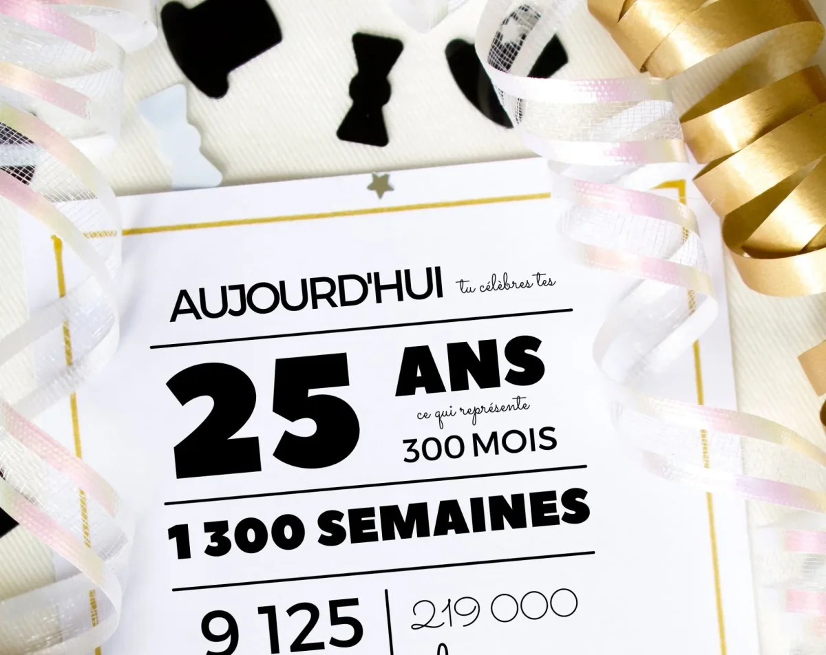 Célébrez un quart de siècle avec élégance grâce à notre affiche 25 ans