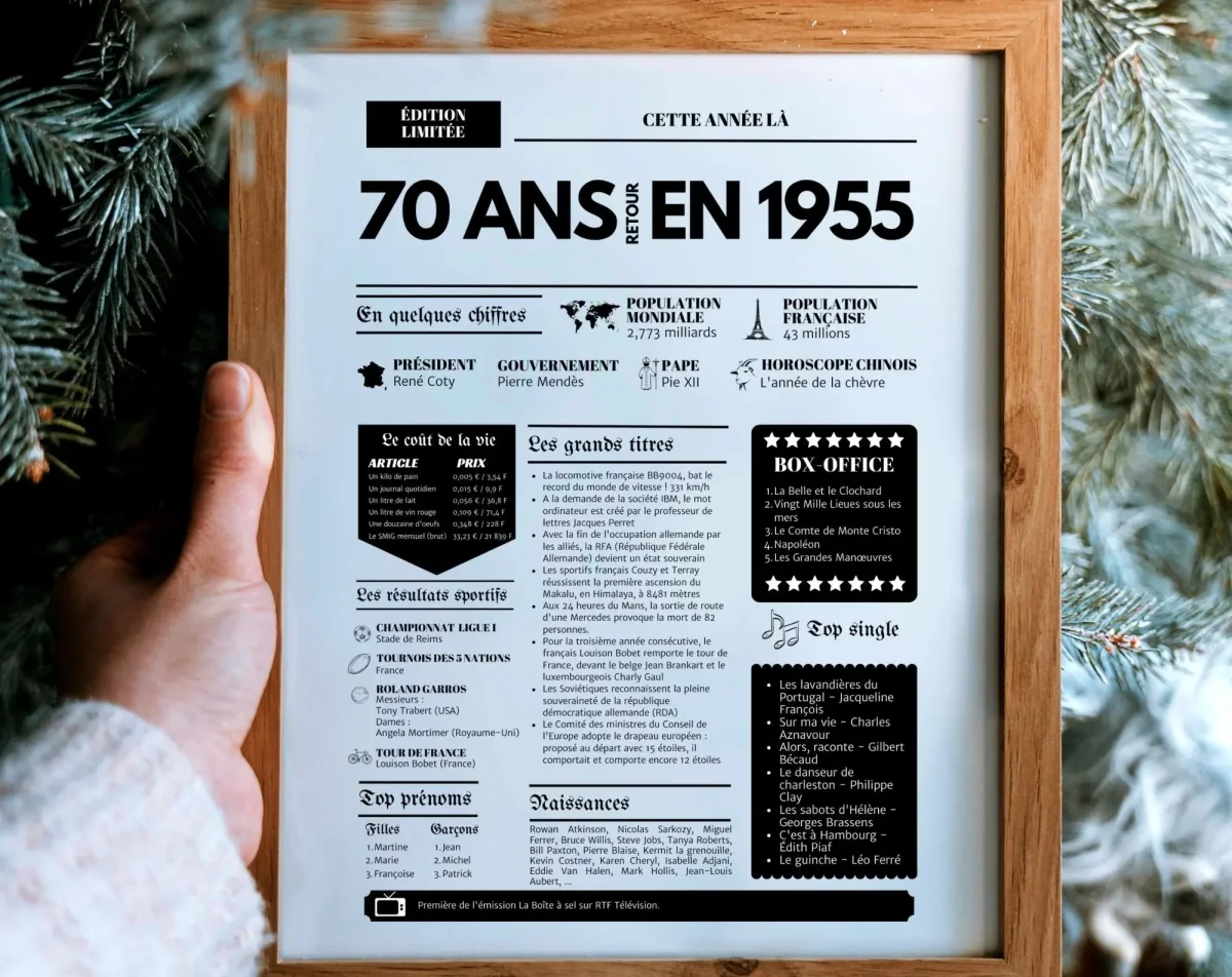 • Personnes nées en 1955 : Un cadeau unique et plein de nostalgie pour leurs 70 ans.