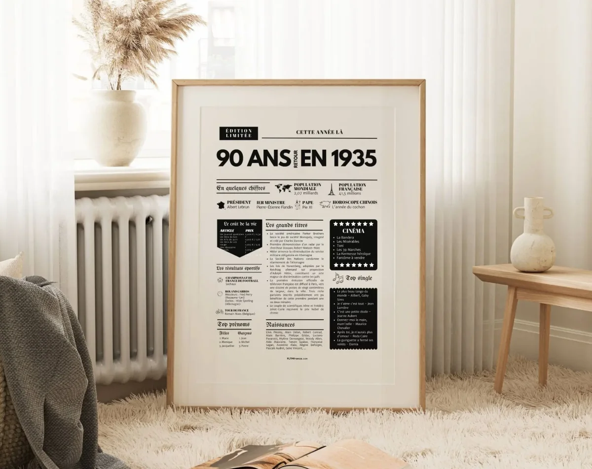 Revivez l’année 1935 avec l’Affiche 90 ans retour en 1935 – Journal de l’année