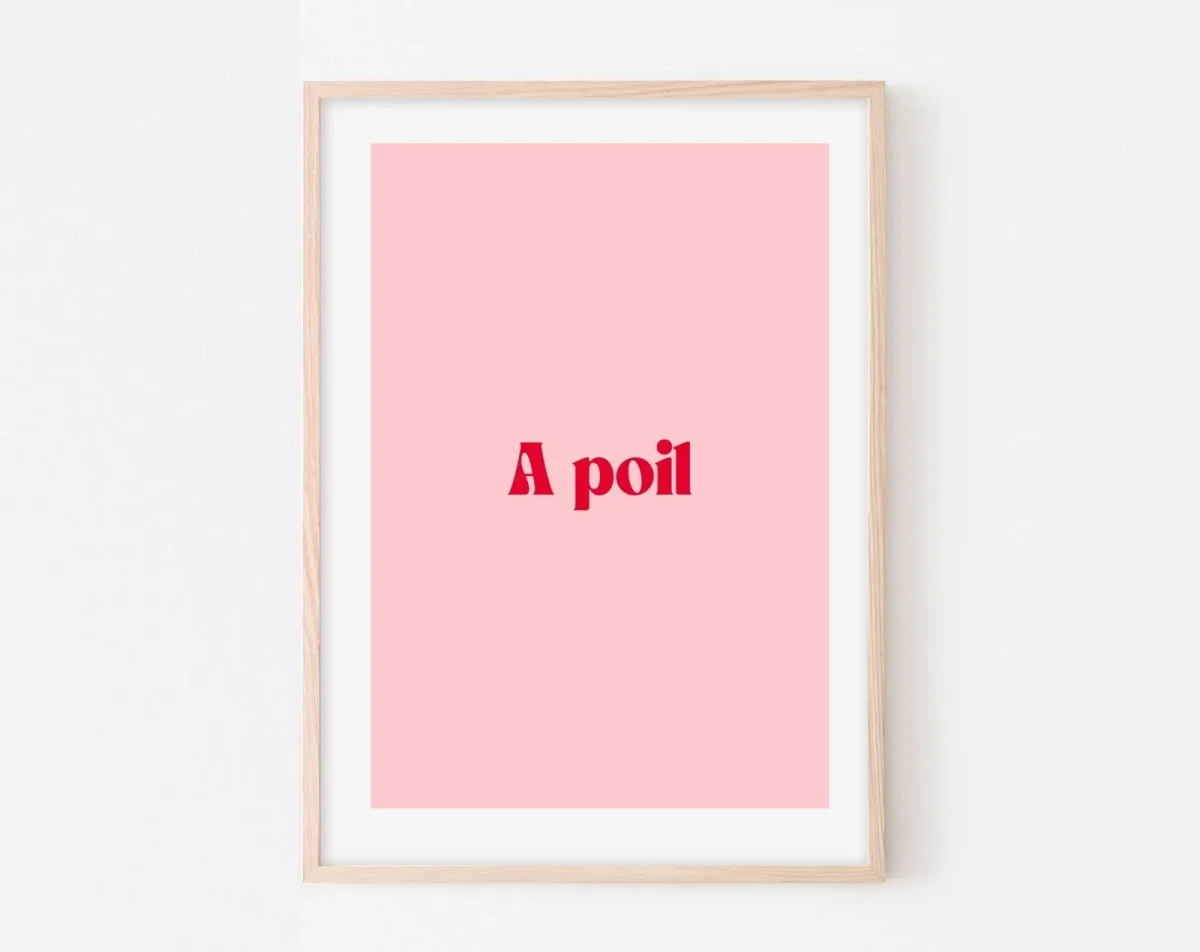 Envie d’une décoration qui sort de l’ordinaire ? L’affiche « A poil » est la touche parfaite pour apporter une note d’humour et de légèreté à ton intérieur. Avec son fond rose doux et sa typographie audacieuse, elle allie minimalisme et espièglerie pour une déco qui ne passe pas inaperçue.