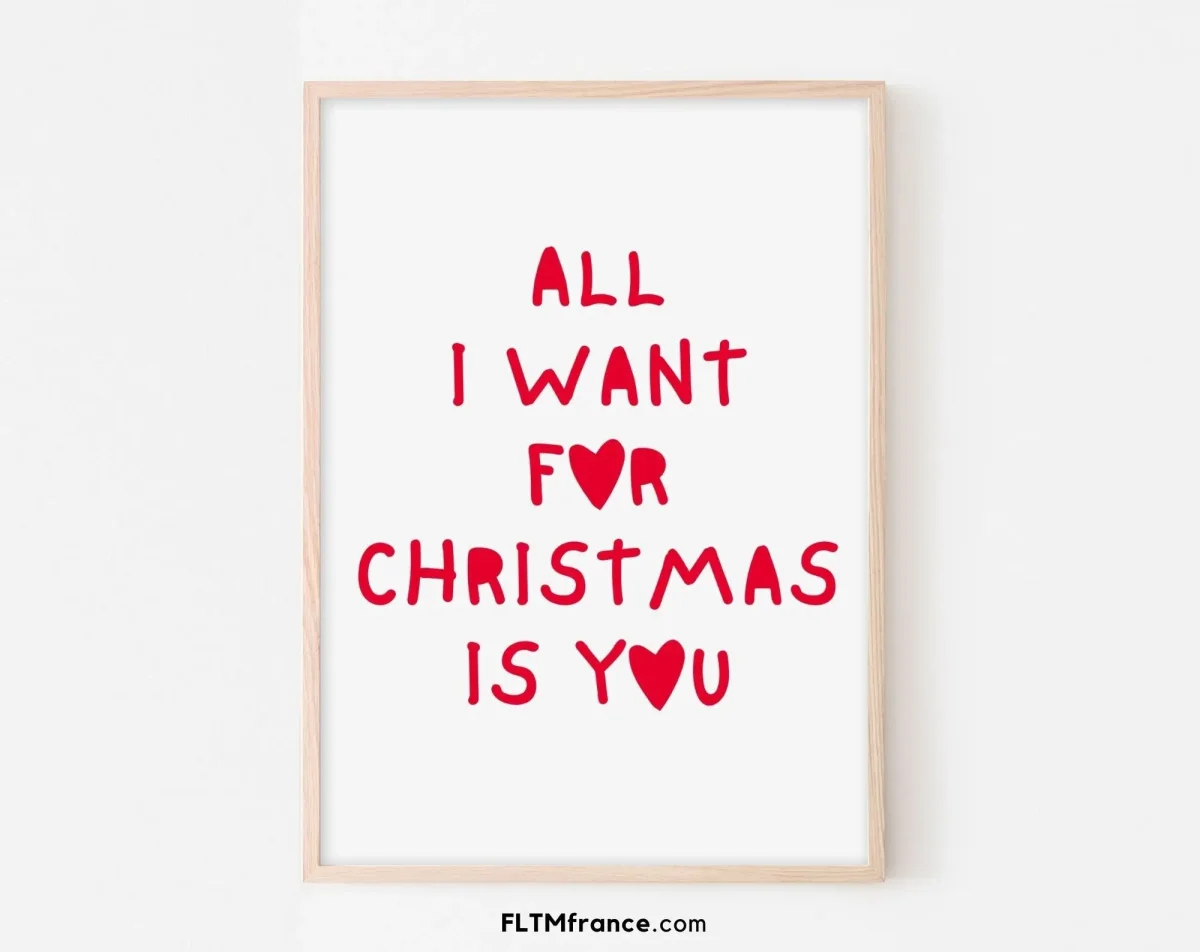 Ajoutez une touche romantique à votre décoration de Noël avec notre Affiche All I Want for Christmas is You