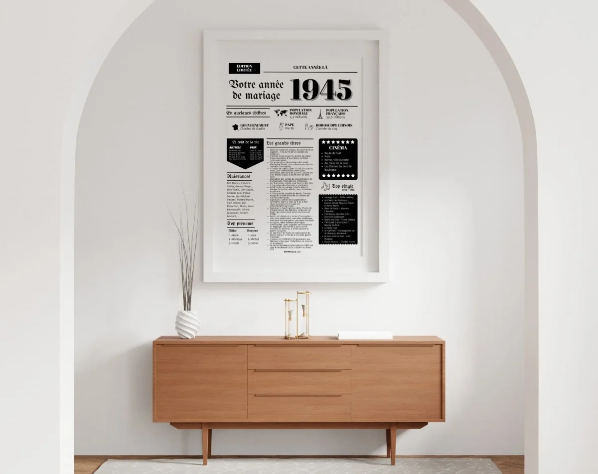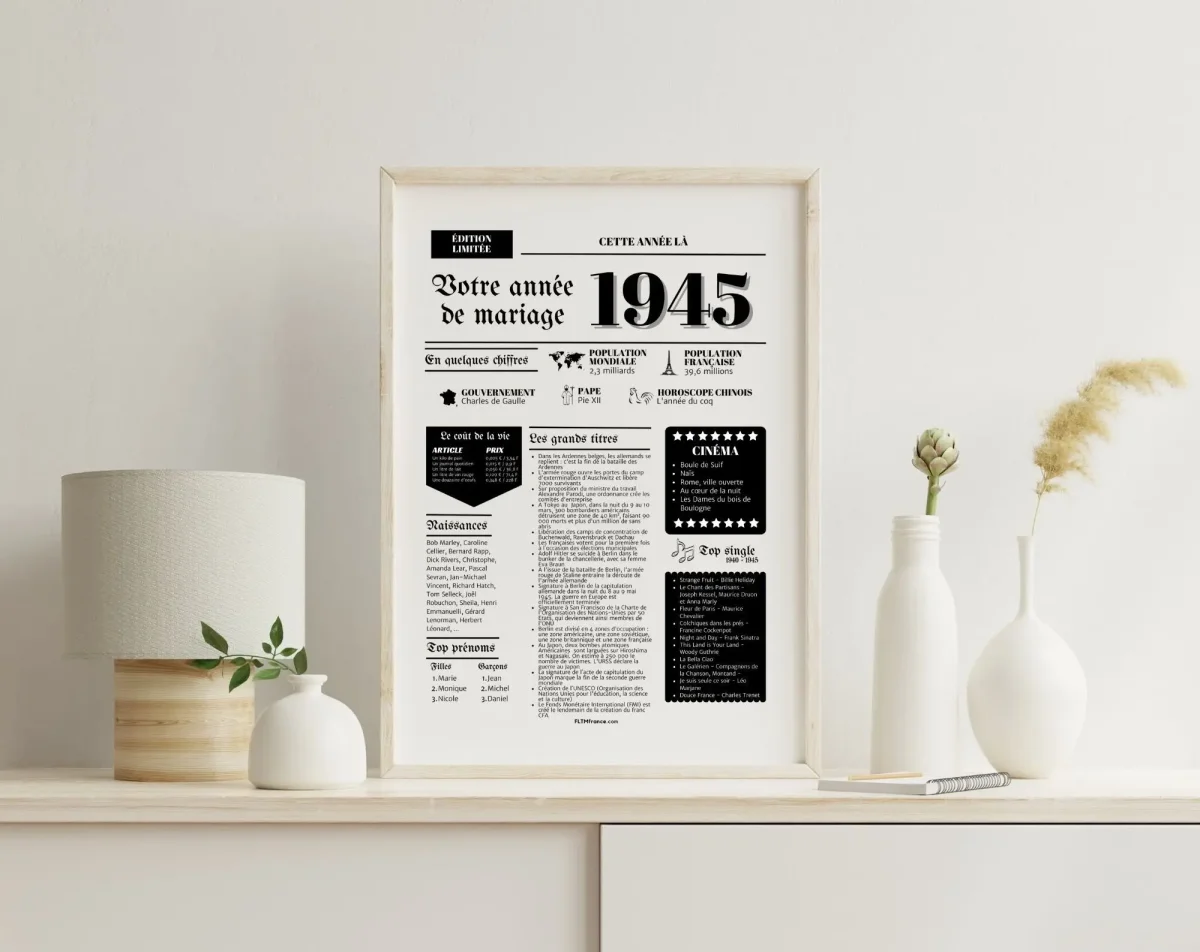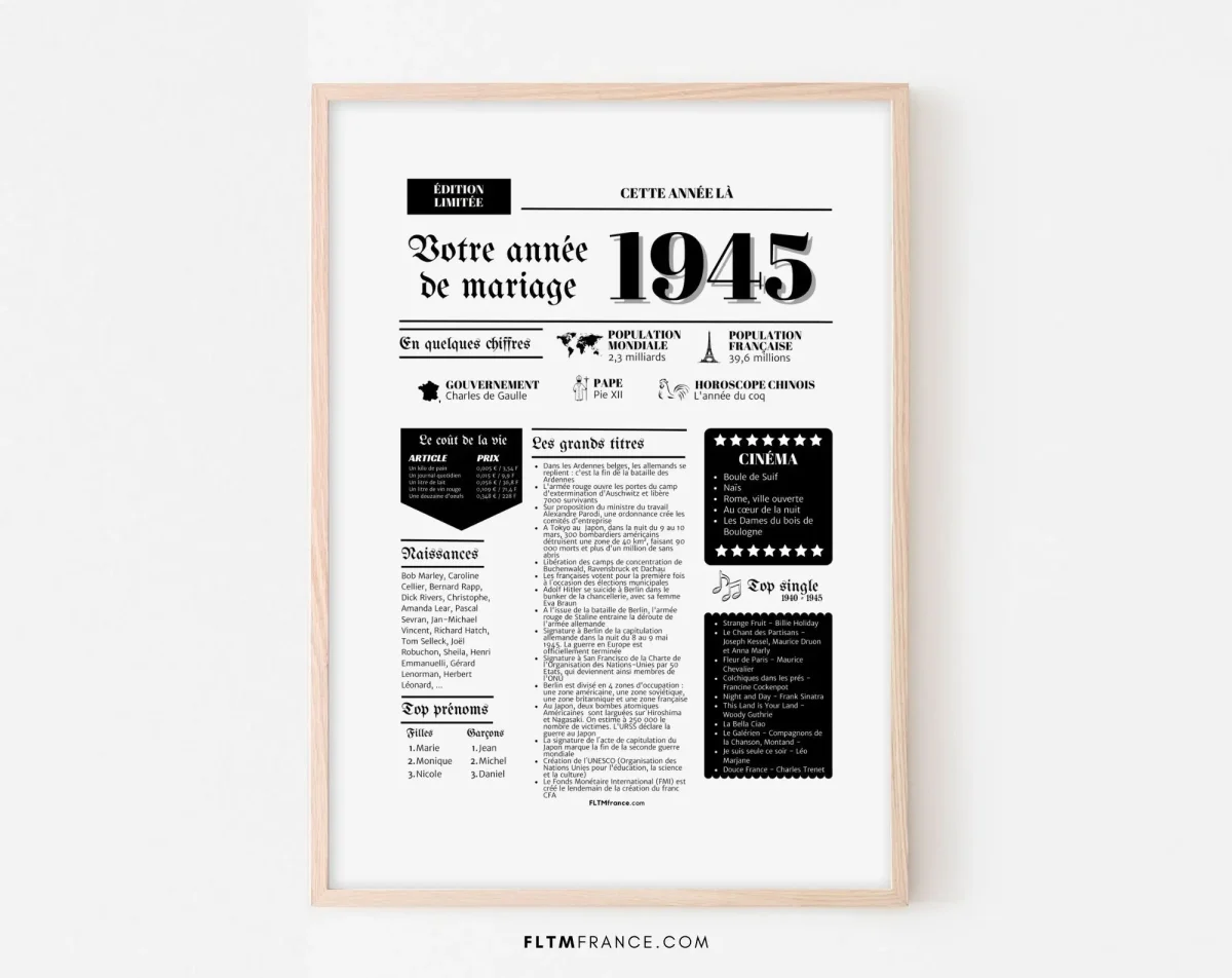 79 ans de mariage : célébrer les noces de bambou avec une affiche année de mariage 1945