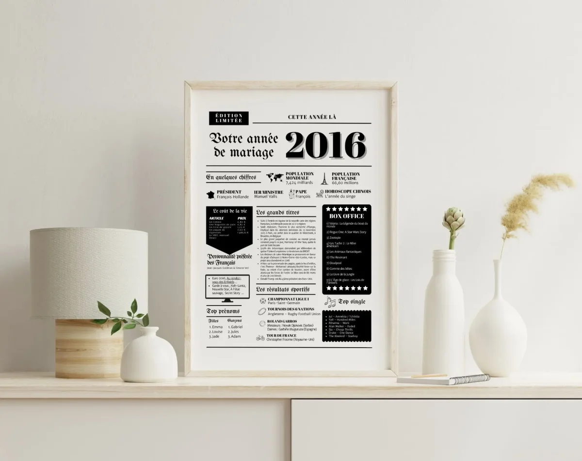🖼 Personnalisez votre célébration : Bien que la personnalisation directe de l’affiche ne soit pas proposée par FLTMfrance, vous avez la liberté de l’encadrer selon vos goûts, ajoutant une dimension personnelle et unique à ce souvenir précieux.