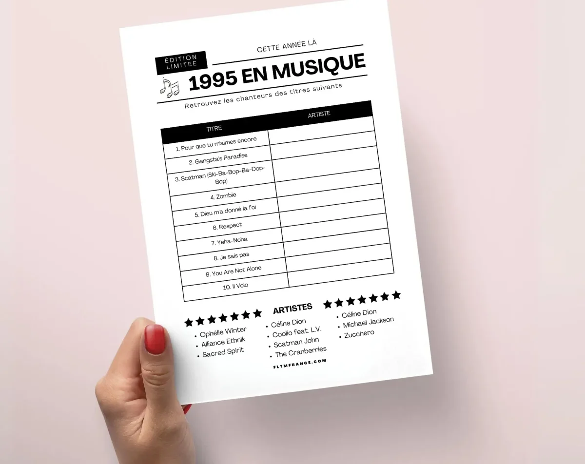 La préparation d’un 30e anniversaire peut être une source de stress, surtout lorsqu’il s’agit de trouver des animations originales. Notre jeu anniversaire 30 ans à imprimer est la solution idéale pour vous soulager. Conçu pour être téléchargé et utilisé immédiatement, ce jeu est une alternative simple et efficace à la recherche de divertissements complexes. Vous n’avez qu’à imprimer le fichier et à suivre les instructions pour une soirée réussie.