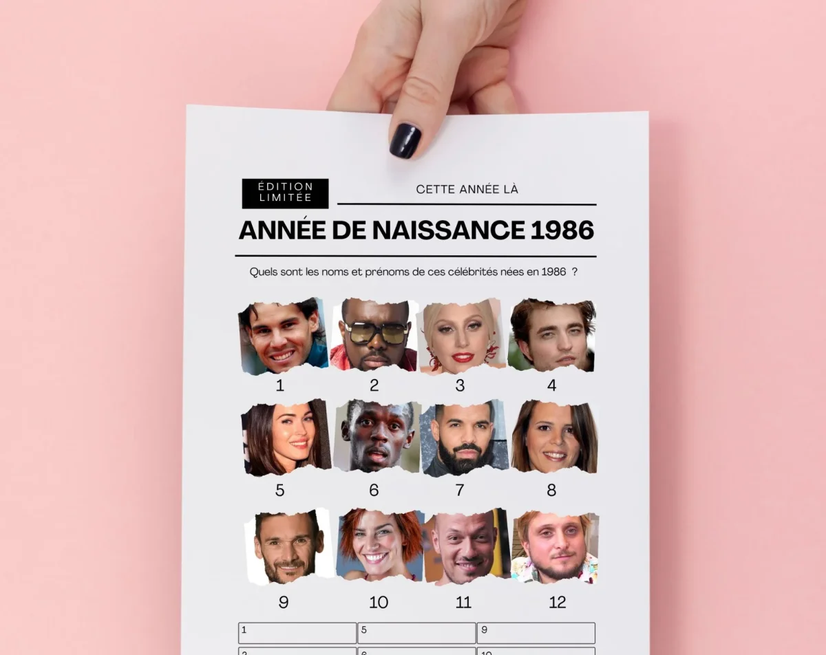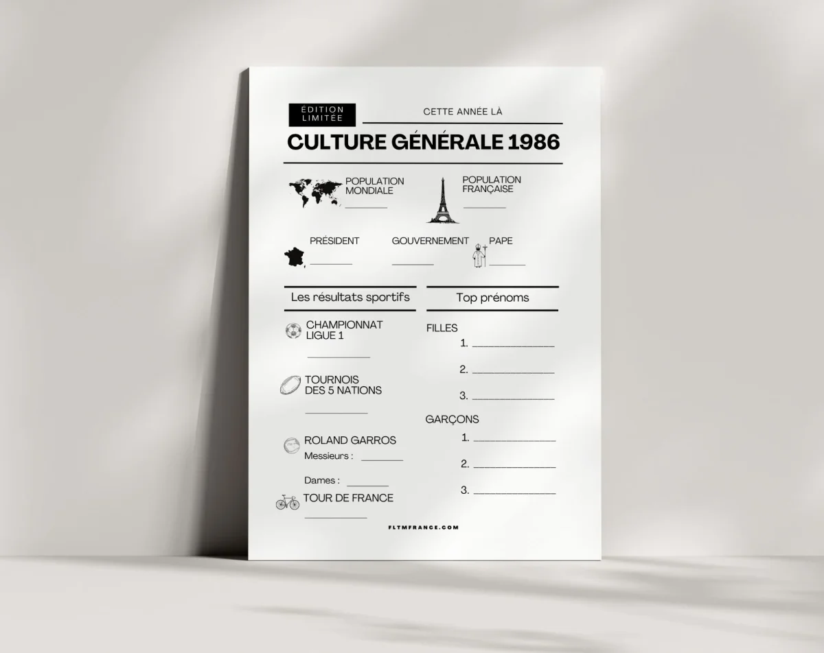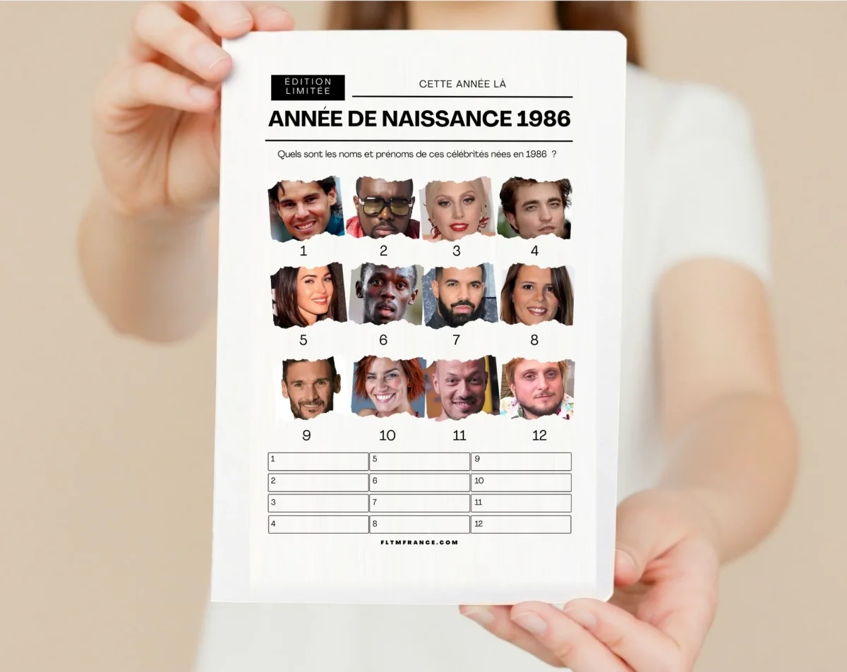Fais revivre la folie des années 80 avec le Jeu anniversaire 1986, une création FLTM, la référence des jeux et affiches à imprimer pour toutes les générations 🎈