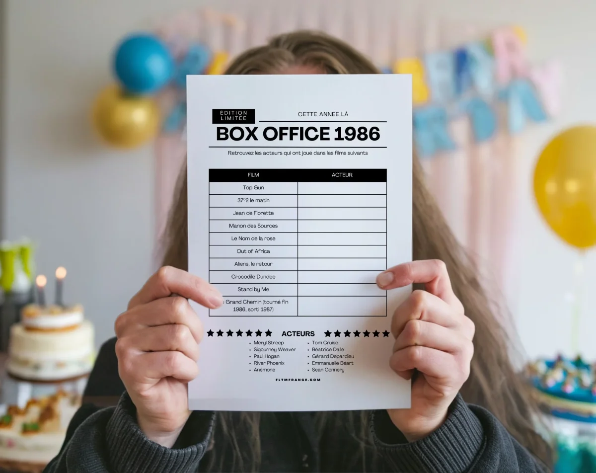 En 2026, on souffle les 40 bougies des personnes nées (ou mariées !) en 1986 🎂 Avec ce jeu anniversaire à imprimer signé FLTM, replonge dans l’ambiance vibrante des années 80 : musique culte, looks audacieux, films inoubliables et événements marquants.