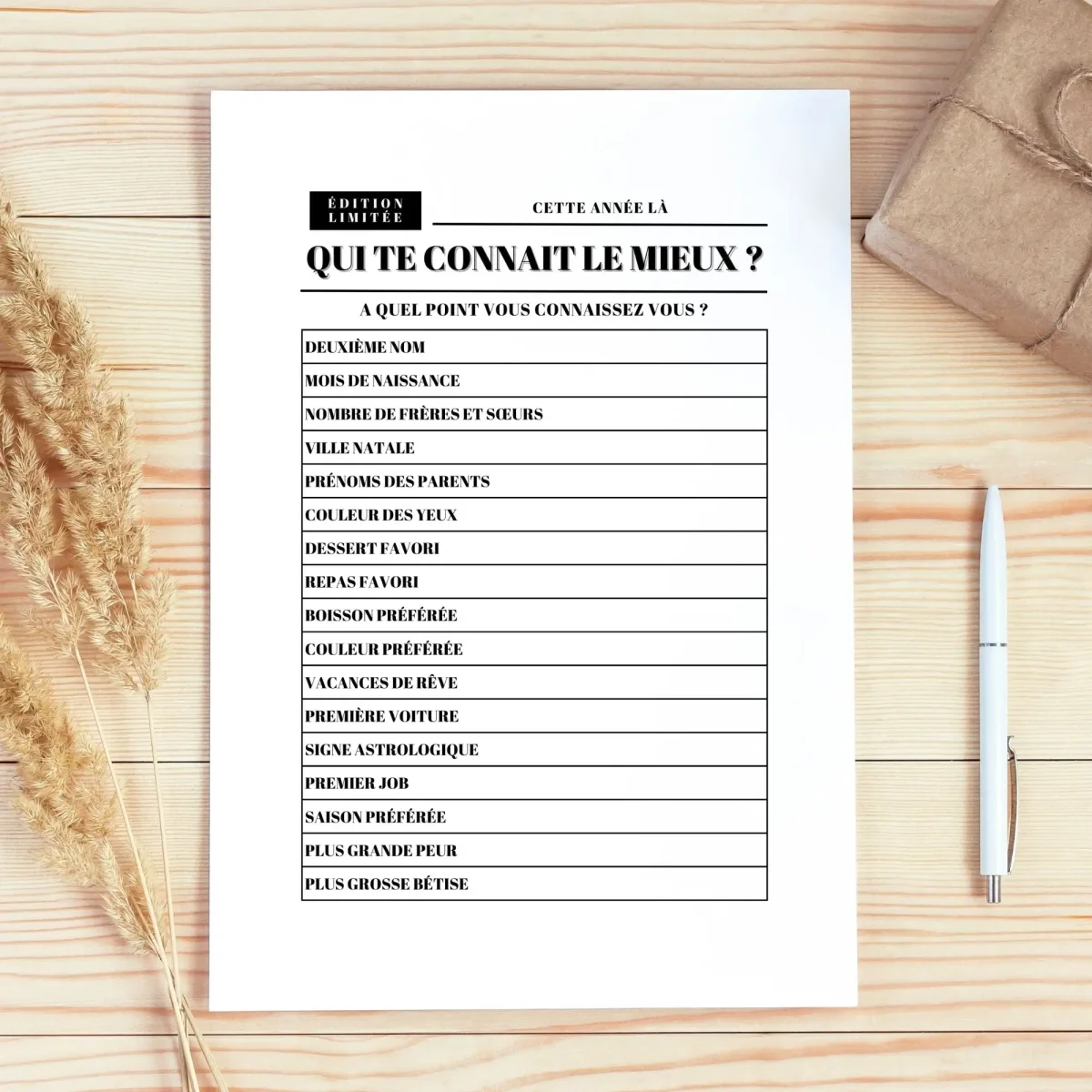 Avec notre jeu anniversaire Année 1998 à imprimer, vous apporterez une touche unique et nostalgique à votre prochaine célébration. Faciles à télécharger et à imprimer, ces jeux sont une solution pratique et divertissante pour animer vos fêtes. Explorez notre collection et découvrez d’autres produits rétro et personnalisés dans notre boutique FLTMfrance pour rendre vos événements encore plus mémorables.