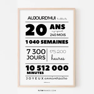 Affiche 20 ans, 240 mois, 1040 semaines – Anniversaire 20 ans