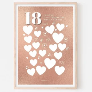 Affiche 18 raisons pour lesquelles nous t’aimons rose gold – Anniversaire 18 ans