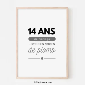 Affiche 14 ans de mariage – Noces de plomb – Cadeau anniversaire de mariage