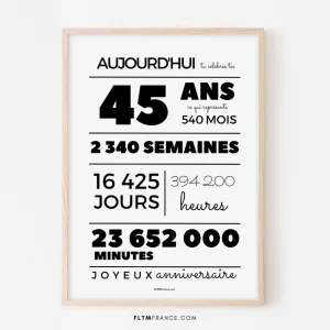 Affiche 45 ans, 540 mois, 2340 semaines – Carte anniversaire