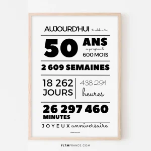 Affiche 50 ans, 600 mois, 2609 semaines – Carte anniversaire