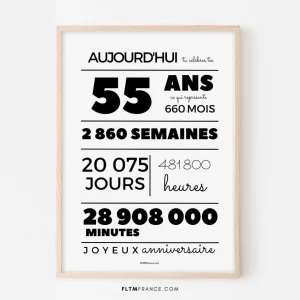 Affiche 55 ans, 660 mois, 2860 semaines – Carte anniversaire