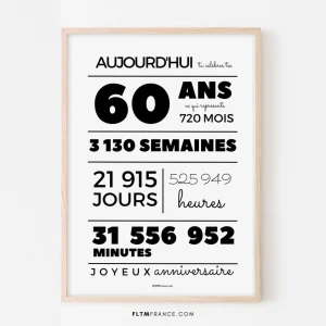 Affiche 60 ans, 720 mois, 3130 semaines – Anniversaire 60 ans