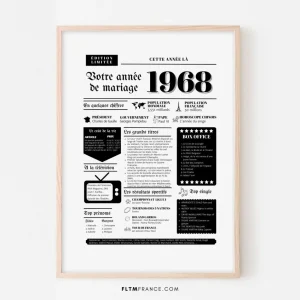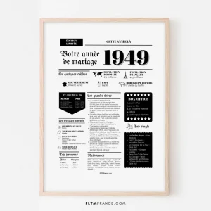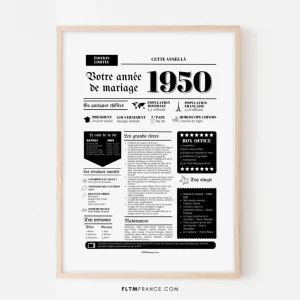 Affiche Année de mariage 1950 – Noces d’albâtre – 75 ans de mariage