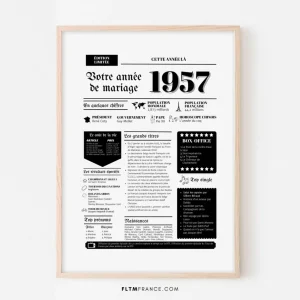 Affiche Année de mariage 1957 – Noces de granite – 68 ans de mariage