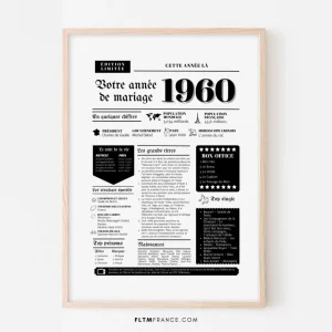 Affiche Année de mariage 1960 – Noces de palissandre – 65 ans de mariage