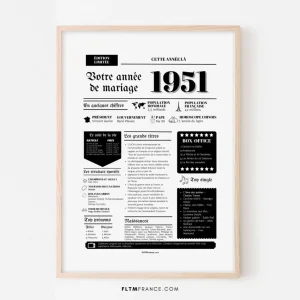 Affiche Année de mariage 1951 – Noces de sienne – 74 ans de mariage