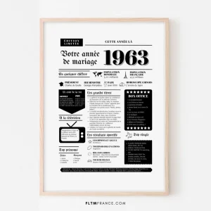 Affiche Année de mariage 1963 – Noces d’ivoire – 62 ans de mariage