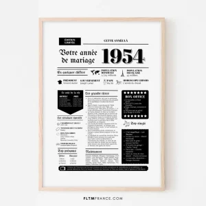 Affiche Année de mariage 1954 – Noces d’ocre – 71 ans de mariage