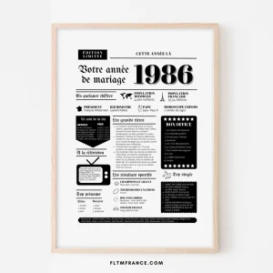 Affiche Année de mariage 1988 – Noces de papier – 37 ans de mariage