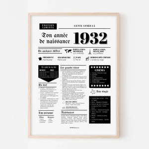 Affiche année de naissance 1932 – Cadeau anniversaire 93 ans