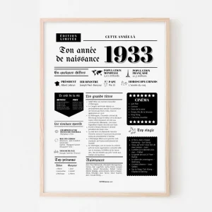 Affiche année de naissance 1933 – Cadeau anniversaire 92 ans