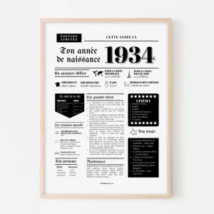 Affiche année de naissance 1934 – Cadeau anniversaire 91 ans