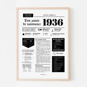 Affiche année de naissance 1936 – Cadeau anniversaire 89 ans