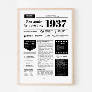 Affiche année de naissance 1937 – Cadeau anniversaire 88 ans
