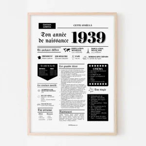 Affiche année de naissance 1939 – Cadeau anniversaire 86 ans