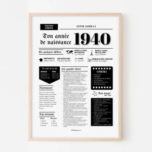 Affiche année de naissance 1940 – Cadeau anniversaire 85 ans