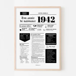 Affiche année de naissance 1942 – Cadeau anniversaire 83 ans