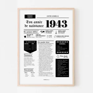 Affiche année de naissance 1943 – Cadeau anniversaire 82 ans