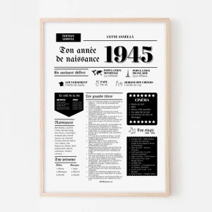 Affiche année de naissance 1945 – Cadeau anniversaire 80 ans