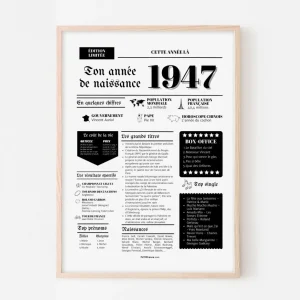 Affiche année de naissance 1947 – Cadeau anniversaire 78 ans