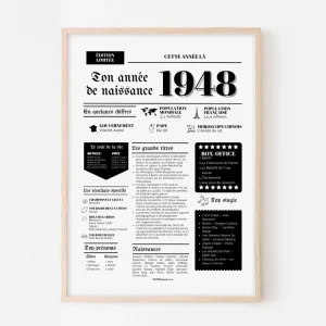 Affiche année de naissance 1948 – Cadeau anniversaire 77 ans
