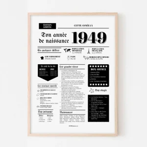 Affiche année de naissance 1949 – Cadeau anniversaire 76 ans