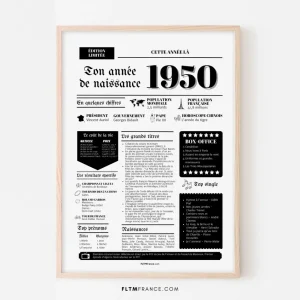 Affiche année de naissance 1950 – Cadeau anniversaire 75 ans