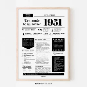 Affiche année de naissance 1951 – Cadeau anniversaire 74 ans