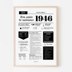 Affiche année de naissance 1946 – Cadeau anniversaire 79 ans