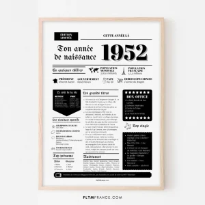 Affiche année de naissance 1952 – Cadeau anniversaire 73 ans