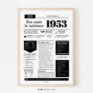 Affiche année de naissance 1953 – Cadeau anniversaire 72 ans