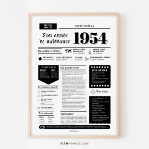 Affiche année de naissance 1954 – Cadeau anniversaire 71 ans