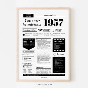 Affiche année de naissance 1957 – Cadeau anniversaire 68 ans