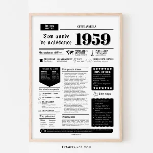 Affiche année de naissance 1959 – Cadeau anniversaire 66 ans