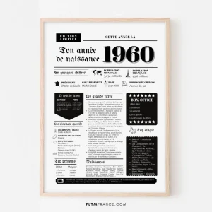 Affiche année de naissance 1960 – Cadeau anniversaire 65 ans